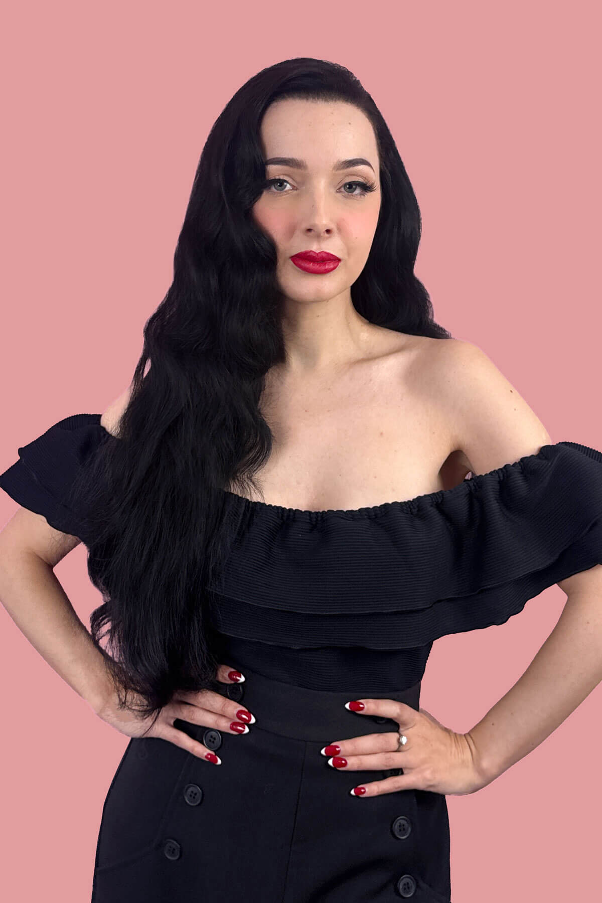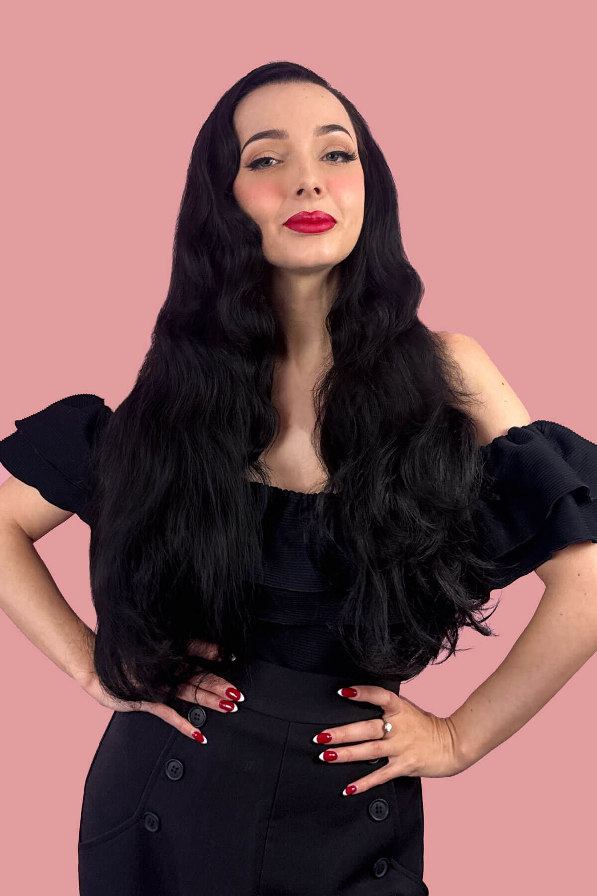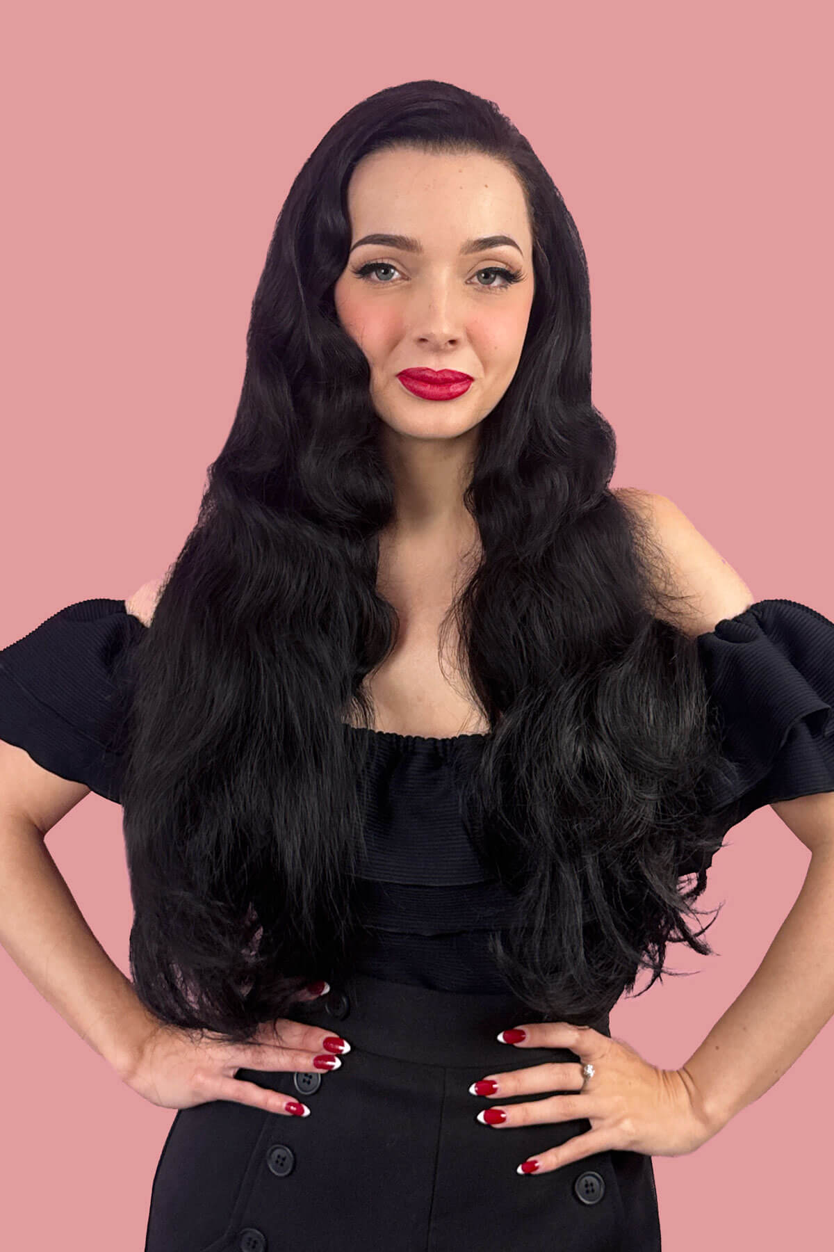 Verleihen Sie Ihrem Look sofort Volumen, Länge und Glamour mit Jessie, unserem atemberaubenden schwarzen 3/4-Haarteil mit langen, fließenden Wellen. Diese luxuriöse Halbperücke sorgt für große, federnde Locken, die mühelos fallen und Ihnen in Sekundenschnelle den roten Teppich-Look verleihen. Perfekt, um Ihren Stil mühelos zu verändern: Jessie verleiht jedem Outfit einen verspielten Hauch von Promi-Flair und macht jeden Tag zu einem besonderen Anlass. Genießen Sie das Selbstvertrauen und den Spaß, die üppiges, voluminöses Haar mit sich bringt, das überall für Aufsehen sorgt.