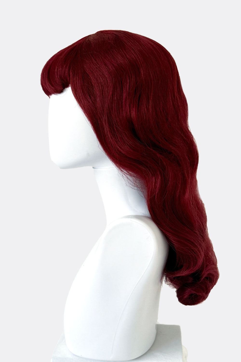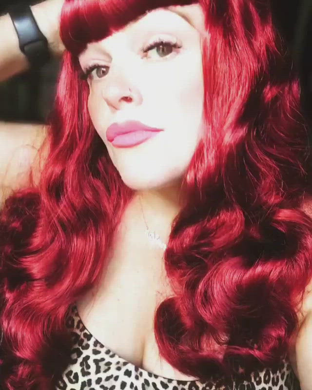 Lange kupferrote und kirschrote Perücke im Pinup-Stil der 50er Jahre
