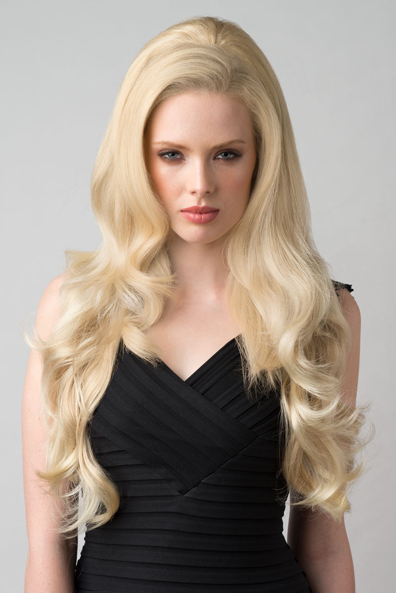 Dieses lange Haarteil besticht durch wunderschöne, kaskadenartige Wellen zu den Spitzen hin und eine höhen- und volumensteigernde „Technologie“ am Scheitel. Die am Scheitel konzentrierten Fasern sorgen dafür, dass Sie im Handumdrehen voluminöses Haar haben.